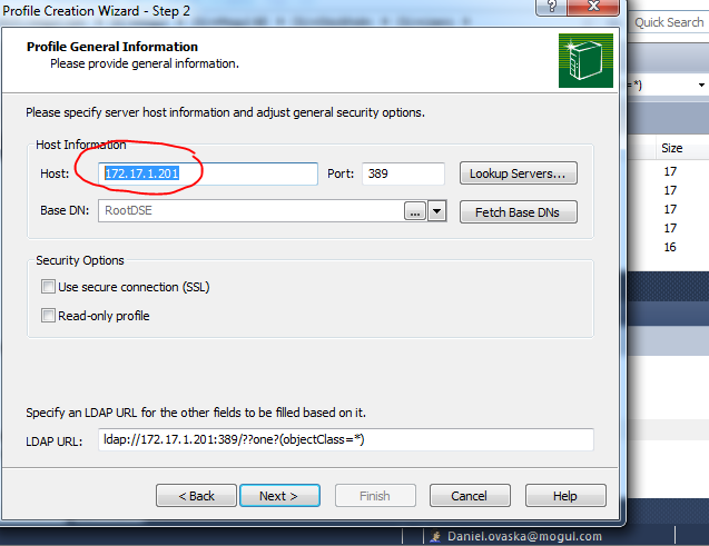 Ok, so you get the correct ip adress of the server that you can ping. But it’s still not working? Now is the time to start downloading some additional tools. I would recommend starting with Softerra’s LDAP browser. Google it and download it. Maybe you have made some mistake on your LDAP connectionstring or the user credentials are wrong?