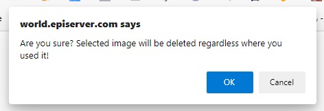 Update: displaying alert for deleting image is done, it will be deployed soon.